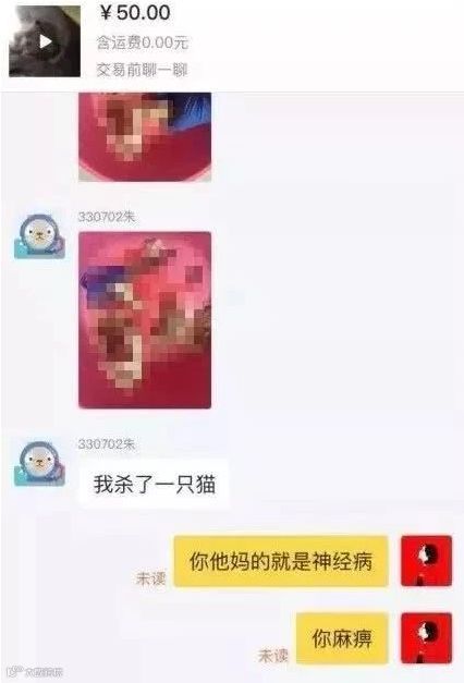 浙江大学学生在某平台为两只猫找领养人,随后领养人再次和这位学生联系的时候收到的确实猫被活活剪死的照片.......