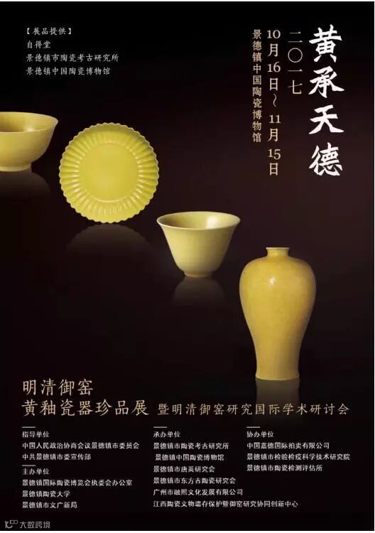 13件从故宫调拨的皇家用瓷,58件曾为名家递藏的全黄釉瓷,13件景德镇御窑厂出土的黄釉瓷标本……自2017年10月16日开幕起,作为国内首次由国有博物院、考古研究所、收藏家共同举办的“黄承天德——明清御窑黄釉瓷器珍品展”在景德镇中国陶瓷博物馆大放异彩。