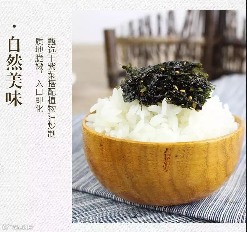 比如说传统海苔,就是不放入香油、食盐等佐料,天然原味;还有配合现代养生理念,用最“健康”的橄榄油制成的橄榄油海苔;
