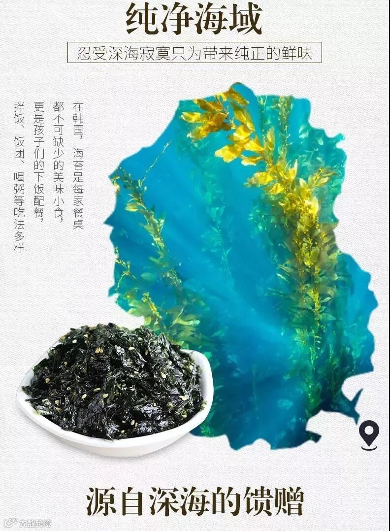 海苔生长在海边岩石上,充分汲取了海水中的精华,含有极其丰富维生素、矿物质和蛋白质。