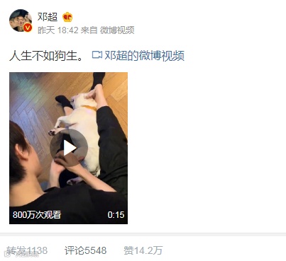 30号,演员@邓超 在网上晒出了给狗狗按摩的小视频,并配文“人生不如狗生”。