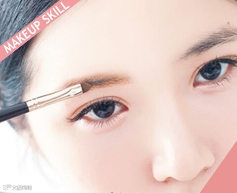 Step4:用眉刷沾较深色的眉粉沿着眉毛的型状从中间开始上色。