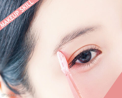 Step2:然后使用挂眉刀把眉峰上面的眉毛修干净,弱化眉峰。