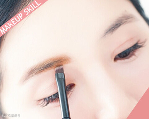Step5:使用斜角刷沾较浅色的眉粉,把眉头以及眉毛的边缘刷上颜色,主要要跟眉毛中间的深色眉粉过渡。