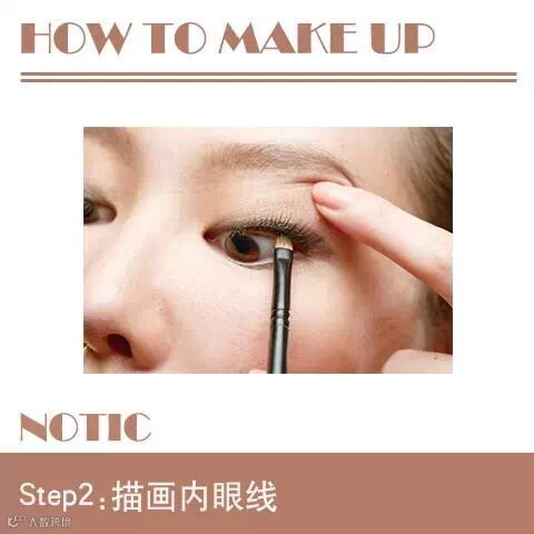 2、继续用刚才的眼线笔描画内眼线,要超级小心的,毕竟离眼球太近了,太心急的话有可能会弄到眼球哦!