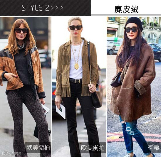 时尚点评:OP这一身麂皮绒的搭配真是深入民心,从淘宝上面大量的同款就可以知道它多么流行。本季流苏裙成为了炙手可热的时髦单品,时尚潮人们纷纷穿着它上街,皮绒质地的、皮质的、针织的...各种各样的流苏晃得人心绪也跟着荡漾起来。