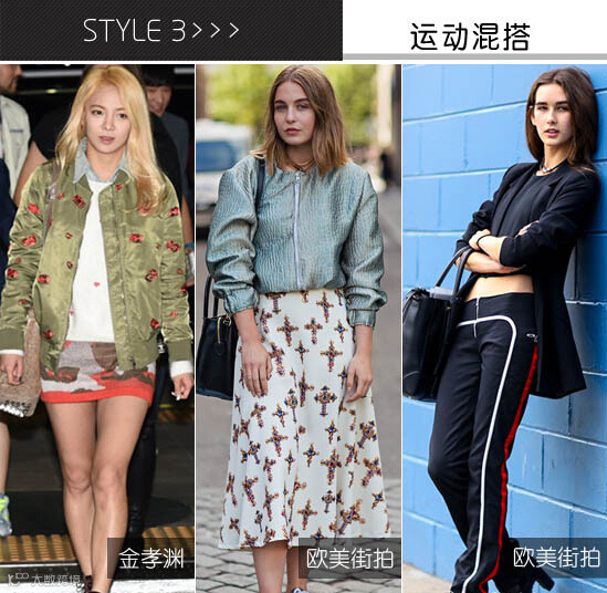 时尚点评:宽大的运动上衣和棒球服混搭柔美的长裙、高跟鞋,穿出别具一格的率性时髦感。 衣橱中的运动服不要只在健身的时候穿啦,拿出来混搭裙子才是本季的时髦亮点哦!