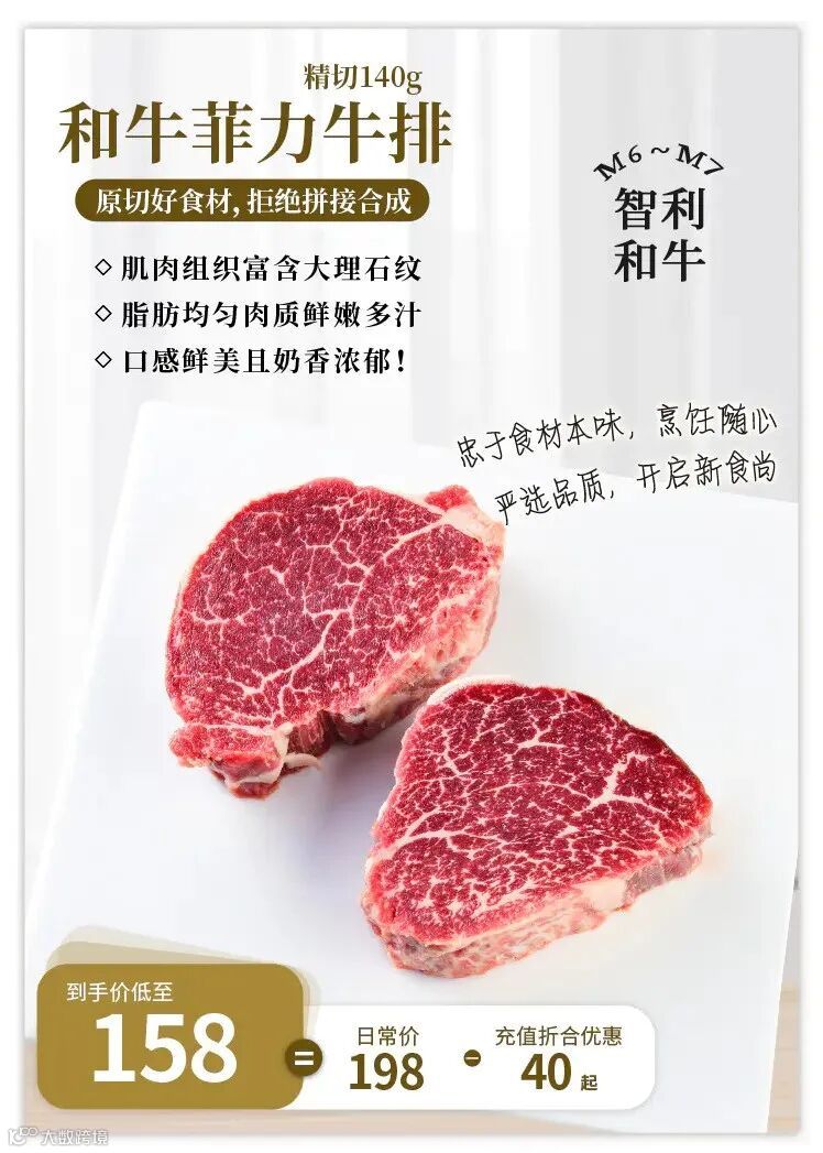 一块富含丰富铁、锌、维生素B-12的和牛菲力牛排