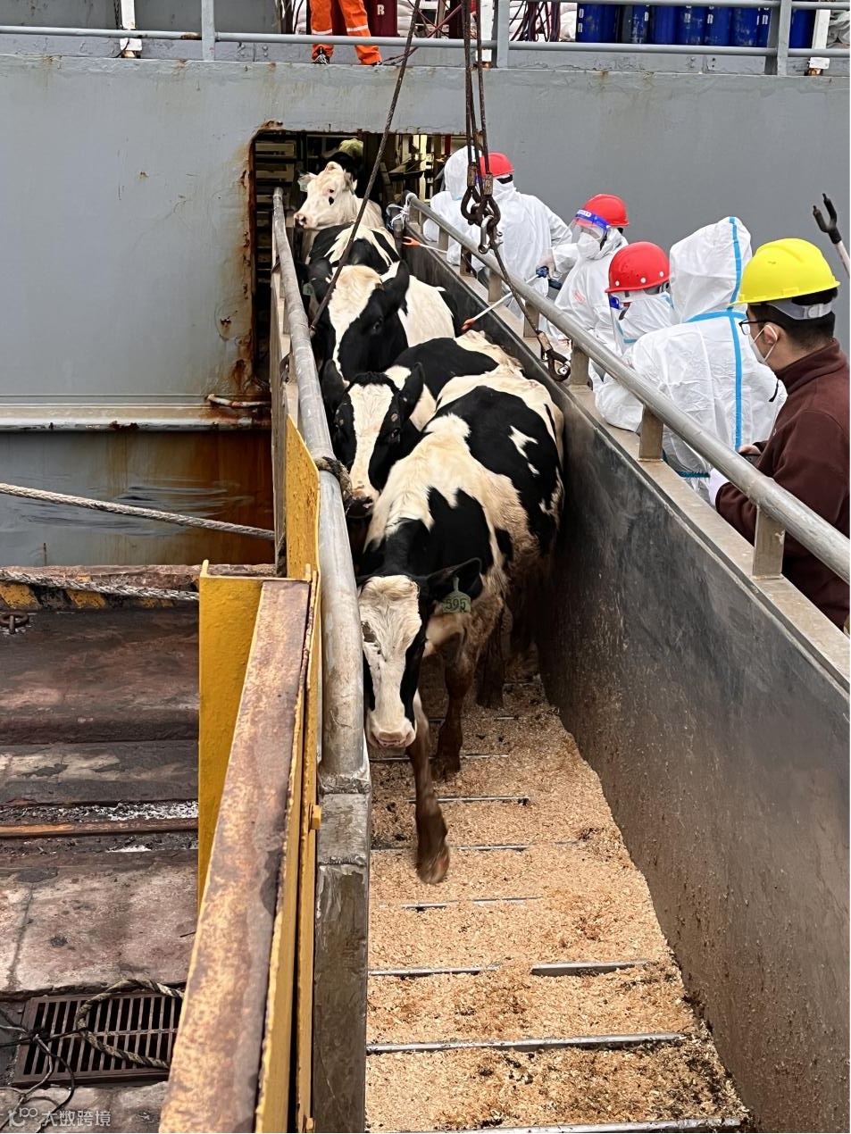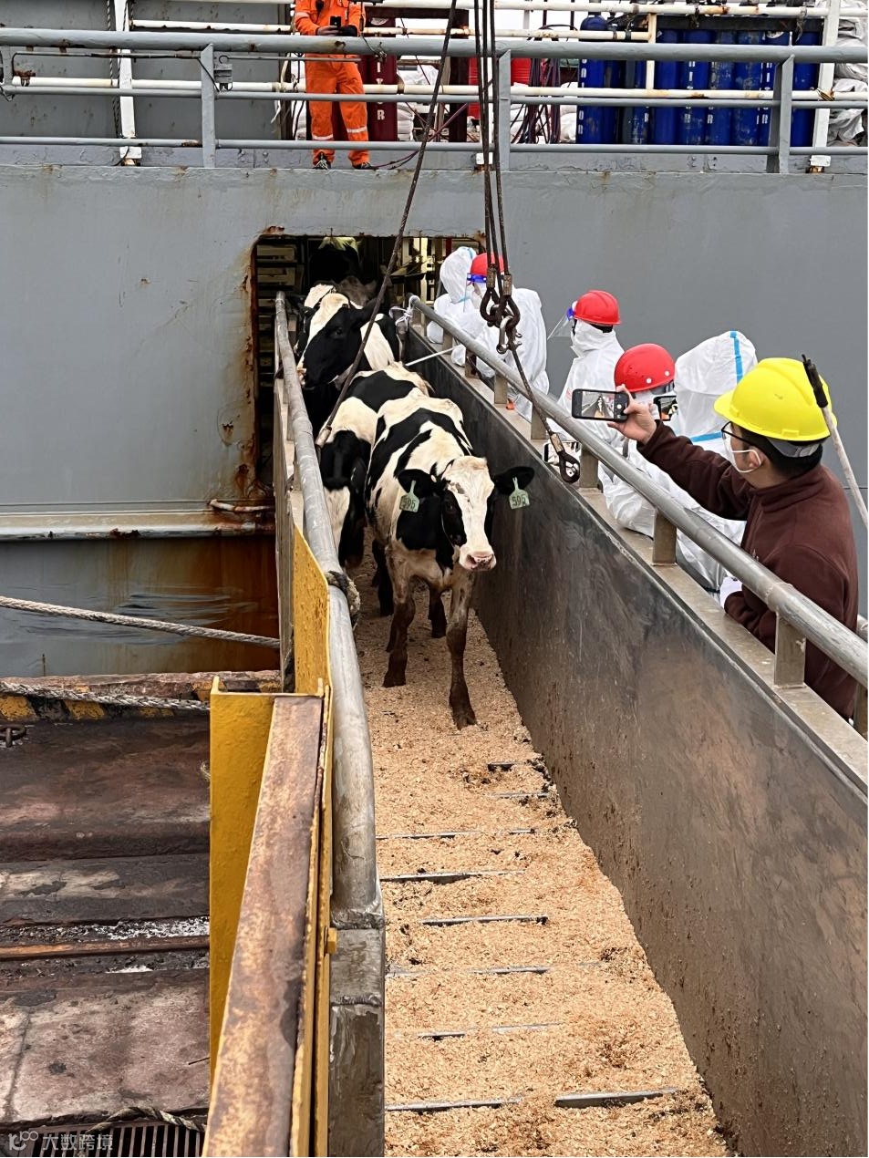 (种牛们争相下船)