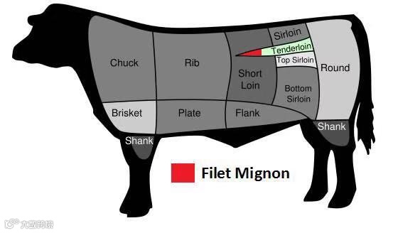 一头成年牛的身上可以分割出来的菲力牛排仅为活牛重量的0.83%-0.97%!是牛13个部位中出肉量最少的一个部位!