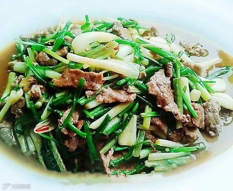 第5步、下荞子翻炒均匀,断生至熟。下牛肉翻炒均匀