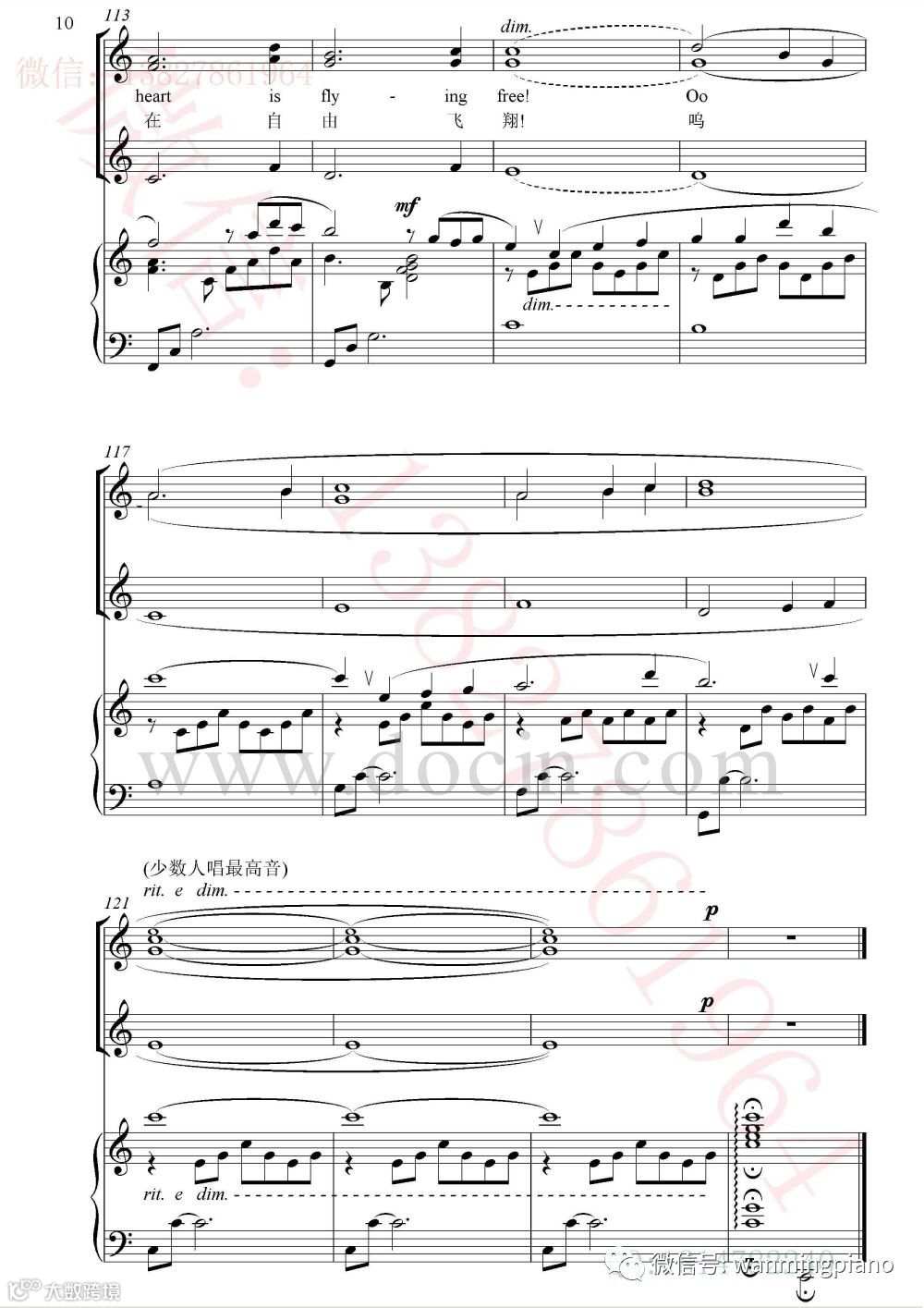 6、121-123小节统一唱最高音E音。