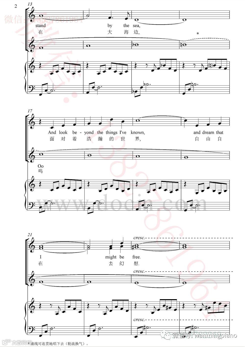 2、《请赐予我们和平》第2房子的地方要注意高音的地方张开口腔歌唱。