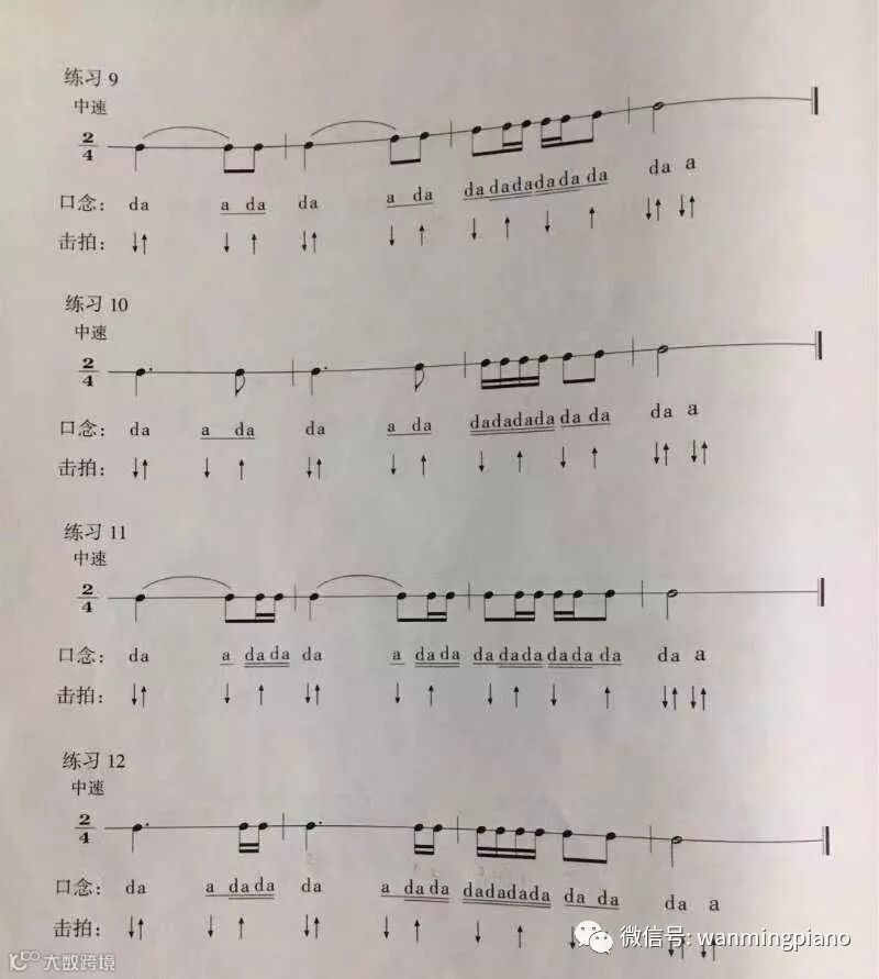 作业;一、节奏练习四条,如图。