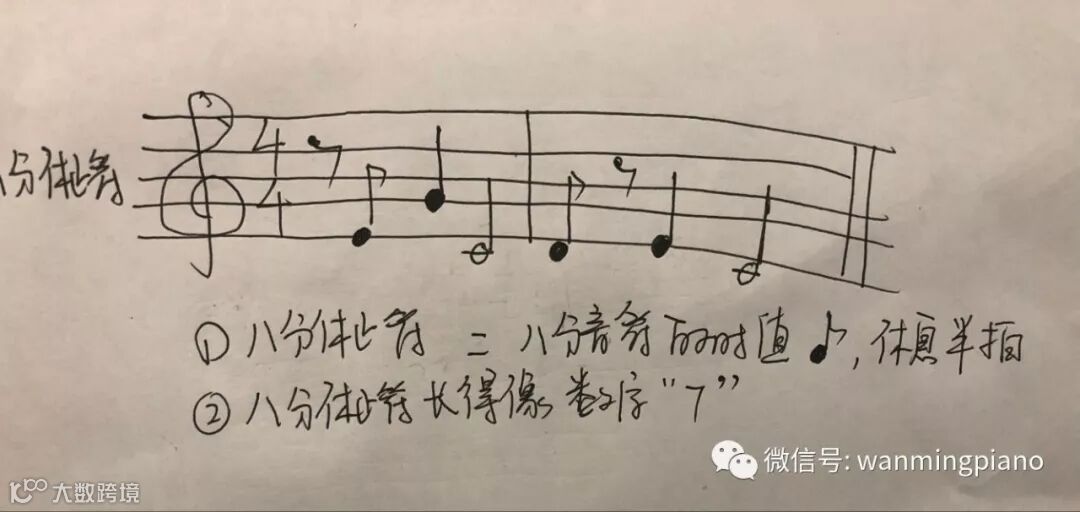 (2)记住八分休止的长相,是不是很像数字“7”?