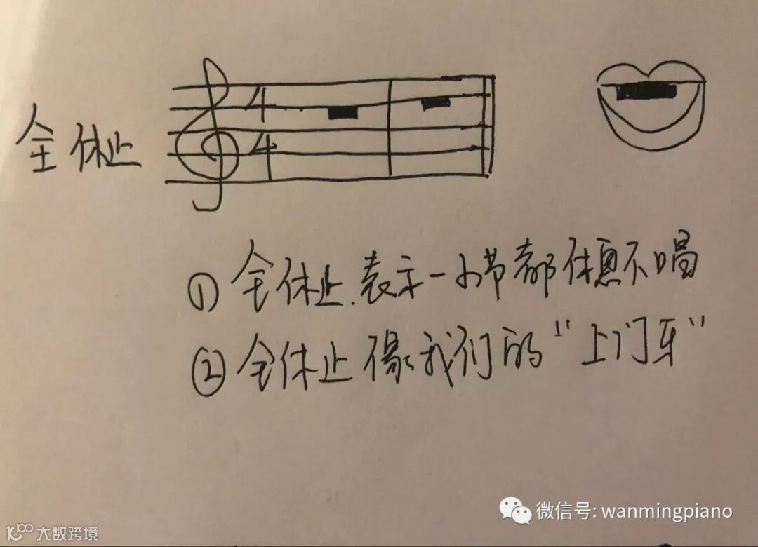 三、记住全休止的长相,是不是很像我们的上门牙齿呢?
