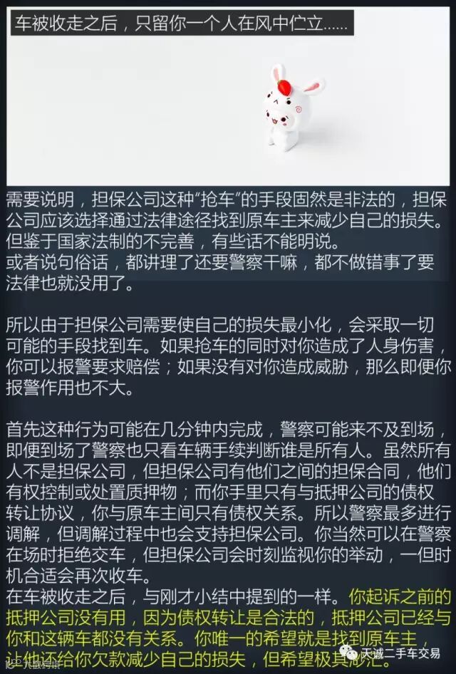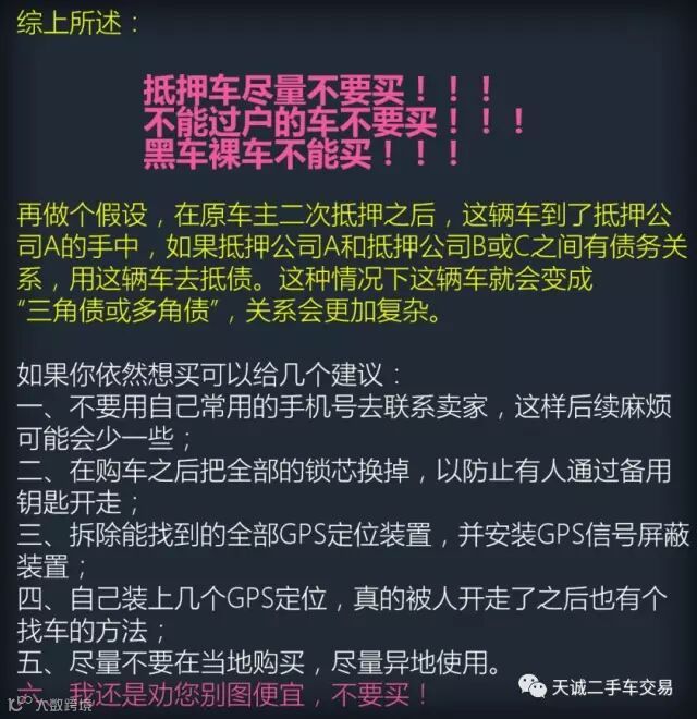 文中列举了抵押车的产生和流通方式,也说出了抵押车的风险。总结来看抵押车可以买,但并不适合所有人;其次抵押车虽然合法,但在某些角度看确是不合理的,尤其是有第三方介入车辆抵押担保过程的车辆。其中的风险需要个人去甄别,其中的不合理需要法规的完善。