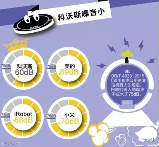 虽然各家噪声都低于国家规定的75dB,前两项占优的小米和iRobot竟然在这个方面落后于科沃斯和美的。