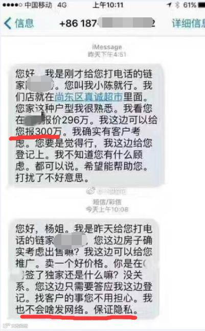 据网友爆料:链家的某经纪人,在业主通过其他中介挂出房源后,根本无实勘的情况下,虚构客户,从其他中介那里翘盘。被有良心的房主给晒了出来!