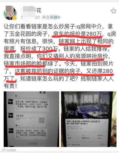 如上图所示,我看到,先是Q房网中介,拿到了玉金花园的房子,房东的报价是280万,Q房网上有照片有信息。很快,链家网上出现了相同的房源,报价成了300万。
