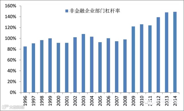 然而根据最新测算,截至2014年底,中国非金融企业部门杠杆率已经飙升至217.3%,比前值翻了一倍。