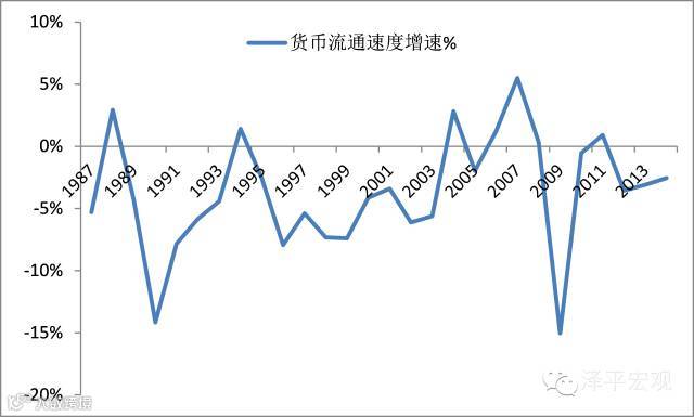 我们通过货币数量论PY=MV 计算发现,由于中国长期采取以固定资产投资拉动经济发展的方式,货币流通速度增速长期处于负值区间,2009年更是由于4万亿天量投资,导致当年货币流动速度下降15.0%,有记录以来的最低值。