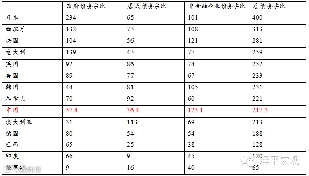 表1 世界主要经济体实体经济债务结构比较(占GDP比重) 单位:%