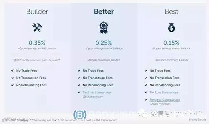由于花旗是 Betterment 投资方之一,他们的一些技巧,不可避免会渗到 Betterment 服务中。想想看,如果一个投资者账内有 100 美元,每月收取 3 美金费用,那么他第一年管理费,就占到了 36%。事实上,由于收费不会因你账户钱少了而减少,第二年管理费占比,甚至可能比这更高。