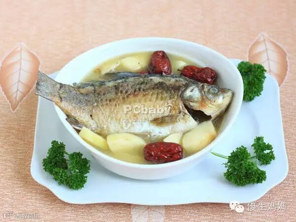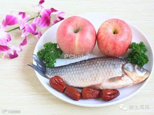 准备食材:苹果250克,鲫鱼300克,枣(干)20克,姜5克,植物油10克,盐3克。