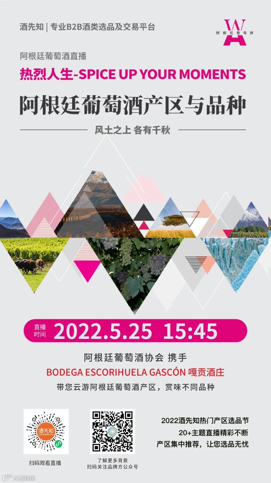 作为阿根廷葡萄酒协会,我们当然希望用阿根廷的国饮——葡萄酒,来庆祝这个伟大的节日。目前全球疫情仍处在震荡期,受此影响各类葡萄酒展会活动延期举行。因此,我们与专业B2B酒类选品及交易平台“酒先知”达成合作,将于5月23日、24日、25日连续推出三场阿根廷葡萄酒主题直播,邀请12家阿根廷葡萄酒庄,与您分享阿根廷葡萄酒的故事新闻、风土人情,一起徜徉在阿根廷葡萄酒的世界里吧!
