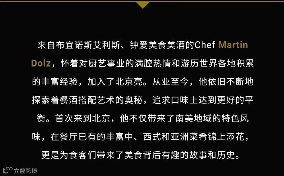 配酒是The President's Blend 2017(总统之选),来自阿根廷百年大庄1884 Escorihuela Gascón。酒的名字叫“总统之选”是因为,这款酒在上世纪40年代就深受时任总统胡安·庇隆(Juan Perón)的喜爱,后常驻阿根廷国宴用酒清单,2018年12月1日在阿根廷首都布宜诺斯艾利斯举办G20峰会,此酒曾进入总统午宴菜单,由时任总统马克里用来宴请各国元首。