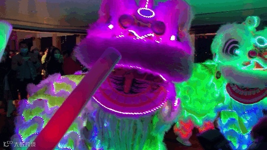 醒狮身上五颜六色的灯光