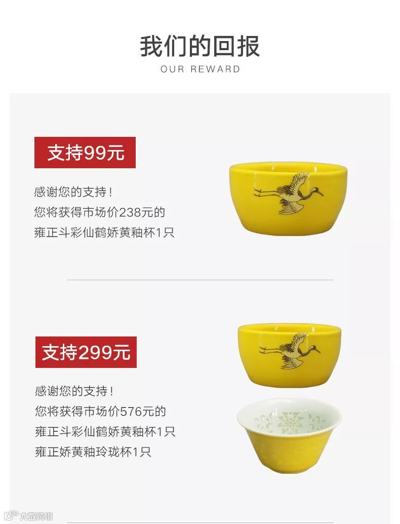 现在,“非遗·瑜窑明清黄釉瓷”京东众筹正在火热进行中,想体验皇家奢华,彰显生活品位,这是您不容错过的选择。