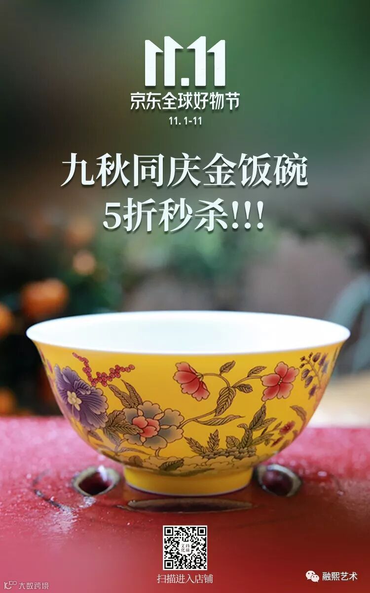 每一件九秋同庆金饭碗皆严格按照御窑工艺,七十二道工序、以原矿着色、全手工、极致还原御窑工艺,打造皇家品质。