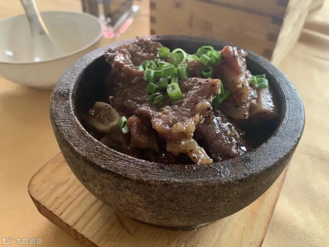 新鲜滚烫的石锅放着肉质细嫩的牛T骨,暖烘烘的享受。