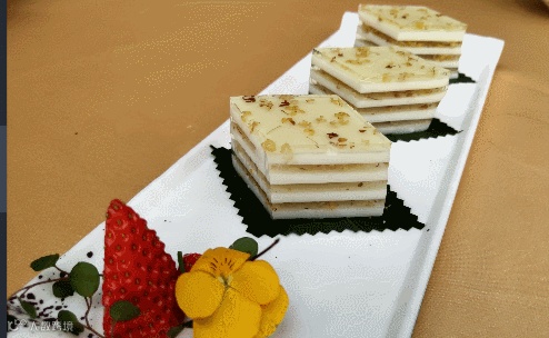 用鲜奶、糖和蜜桂花为原料制作而成的美味糕点,历史悠久。美味爽口,滋润松软,具有浓郁的桂花清香。