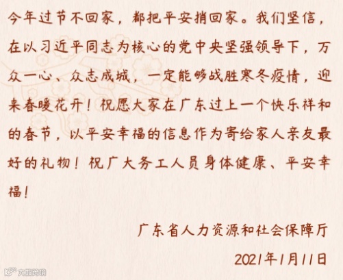 发出了留粤过年的倡议书