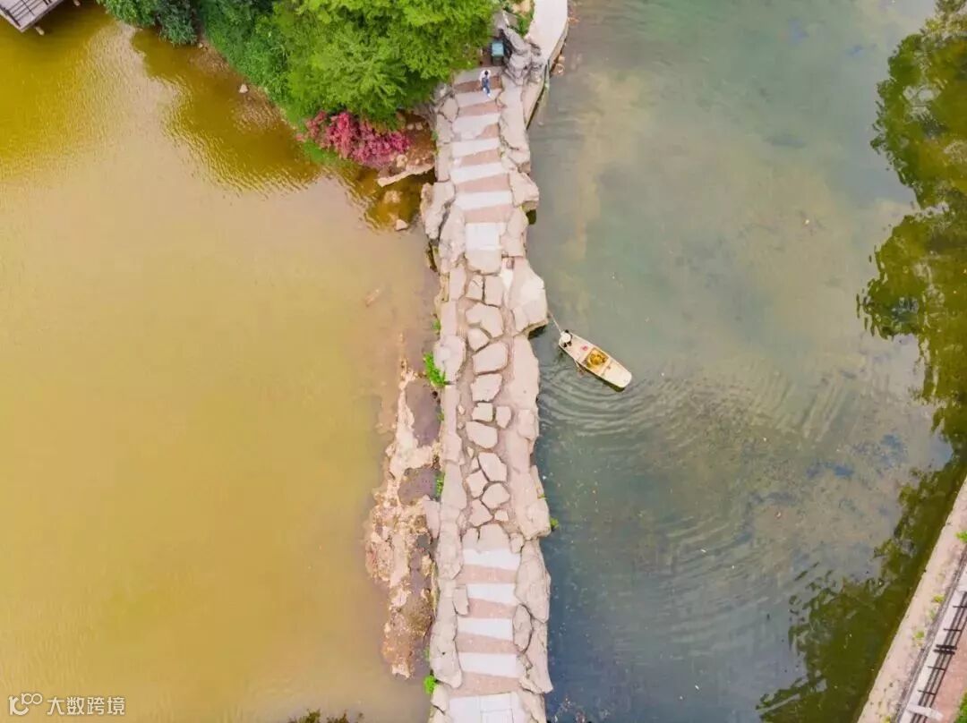 四面环水,绿树成荫