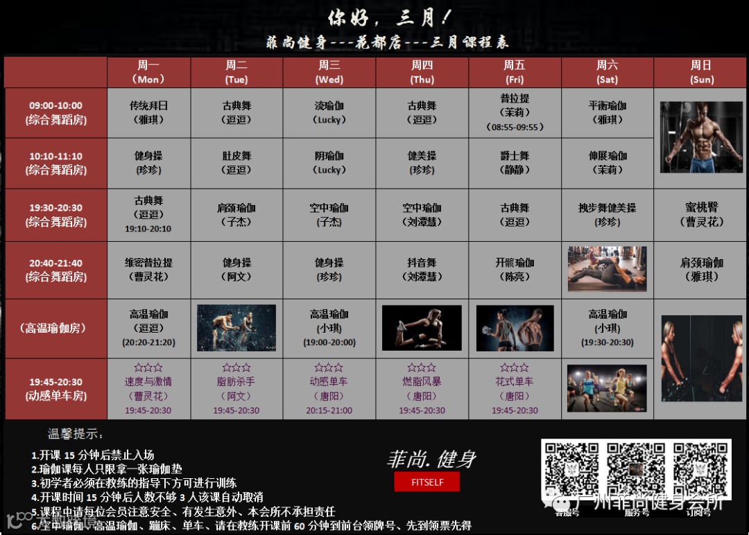 三月份课程表如下: