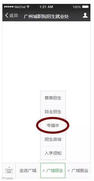 点击本公众号菜单“广城招生”——“专插本”同样可以详细了解欧