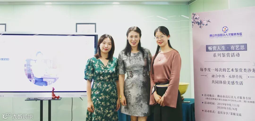 左起:佛山市高层次人才服务专区博管办(人才开发科)主任科员 李高燕女士、著名收藏家冯玮瑜老师、佛山市高层次人才服务专区运营总监 黄碧丽女士