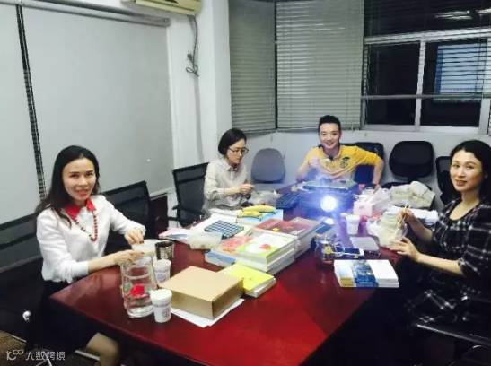 边吃工作餐边讨论,右一为作者冯玮瑜