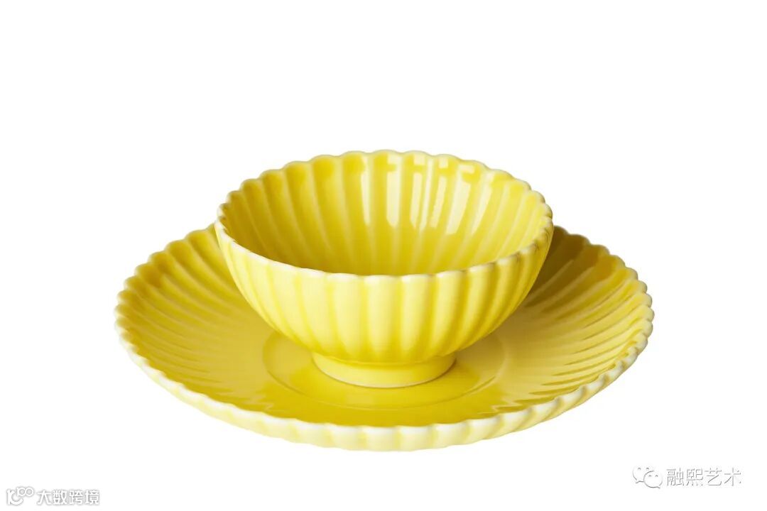 《通典》注云:“黄者,中和美色,黄承天德,最盛淳美,故以尊色为溢也。”黄釉瓷器,明艳璀璨,如清晨的阳光,沐浴其中,对生活的期盼油然而生。