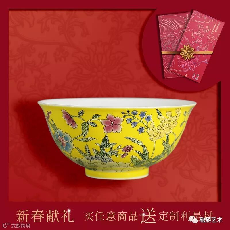 “金饭碗”代表着前程似锦、富贵荣华。金饭碗式样来源于雍正御用黄釉瓷碗,按御窑品质精心仿制,规整平稳,娇美匀净,彰显皇家气派。全身金黄,璀璨炫目,满堂生辉,充满雍容华贵的气象。