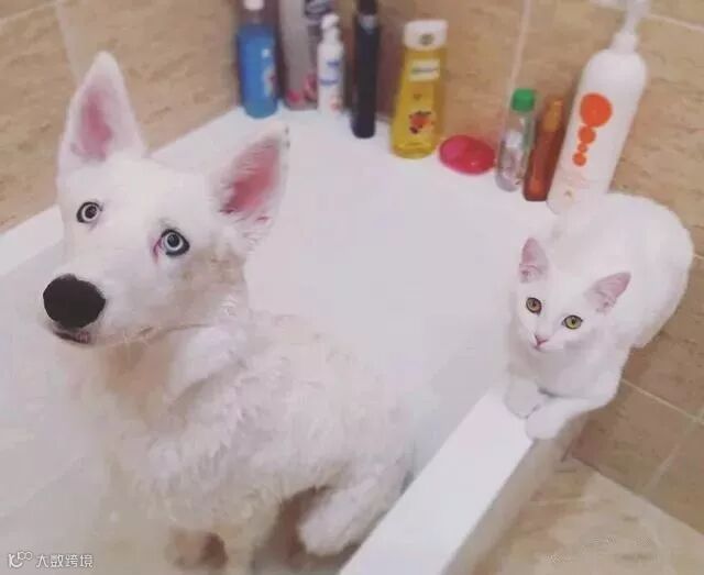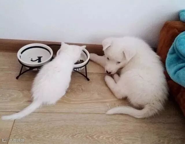 有时候小哥给包子准备好了一碗水,小白马上就冲上去开始喝,哪怕它自己的水盆里是满的,它也要去抢哥哥的水喝。哪怕关系再好,它俩也会因为谁坐主人腿上而吵架。