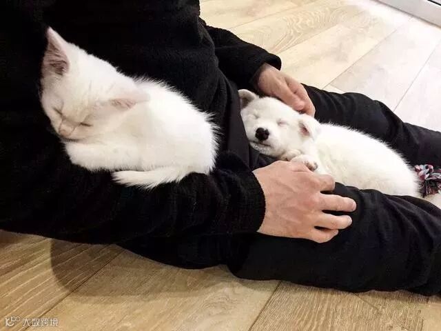 小哥说,如果小白睡在我腿上,包子也会想要上来。小白舔我手想对我撒撒娇,包子也会在一旁开始哼哼唧唧。它们每天就是吃醋、吃饭、睡觉、排泄、玩耍,累了就睡,睡醒了起来继续嗨。