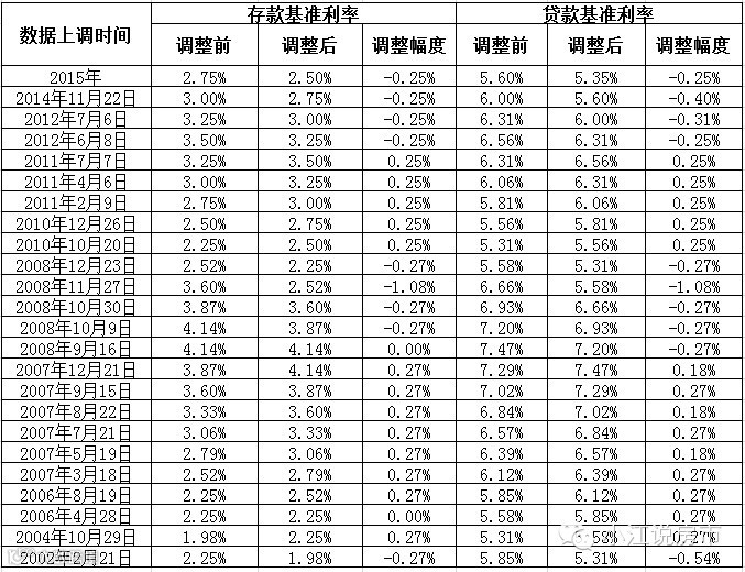 历年央行存贷款利率调整表一览: