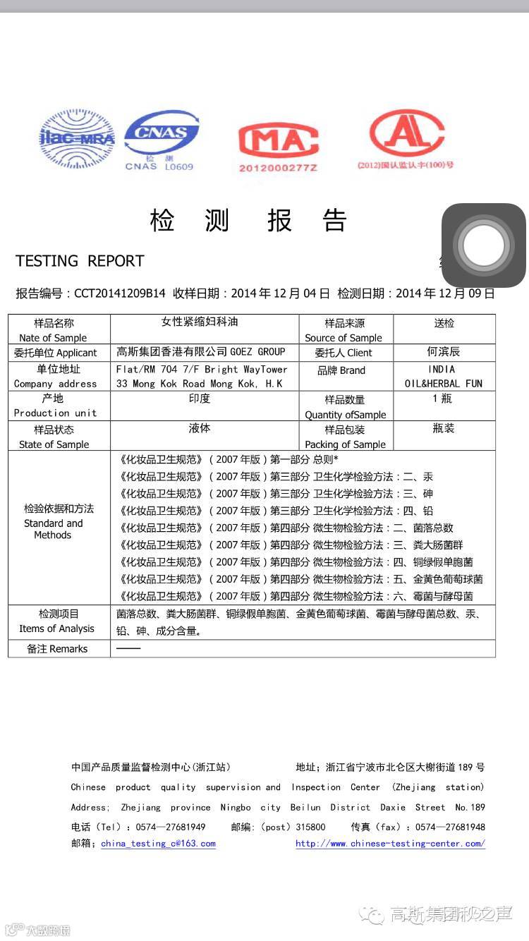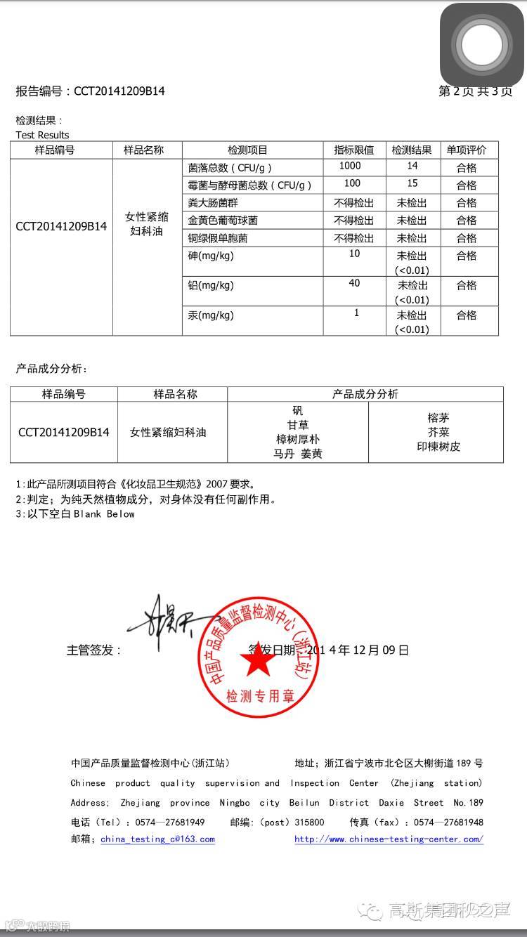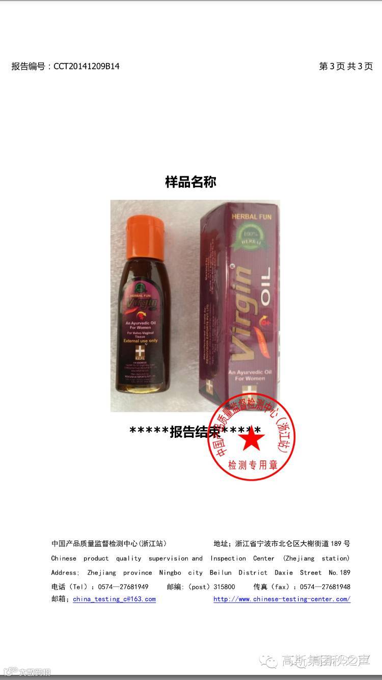 处女油检测报告