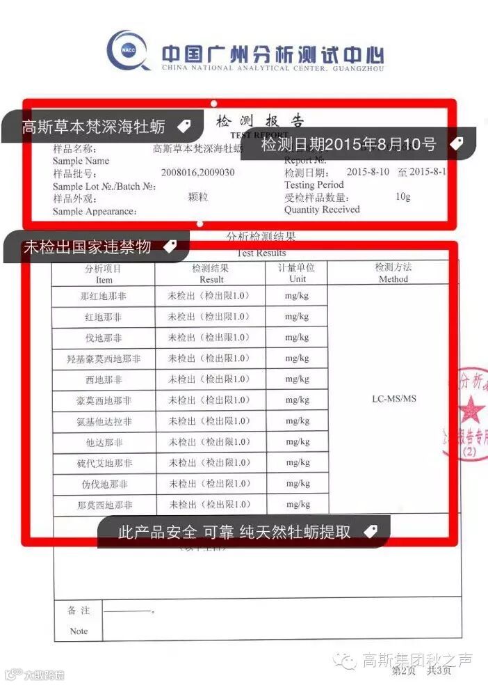 送检至广州分析测试中心,按照国家最高标准检测,无任何违禁添加物,请广大消费者放心使用