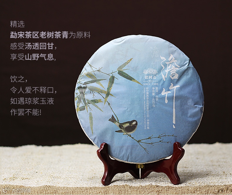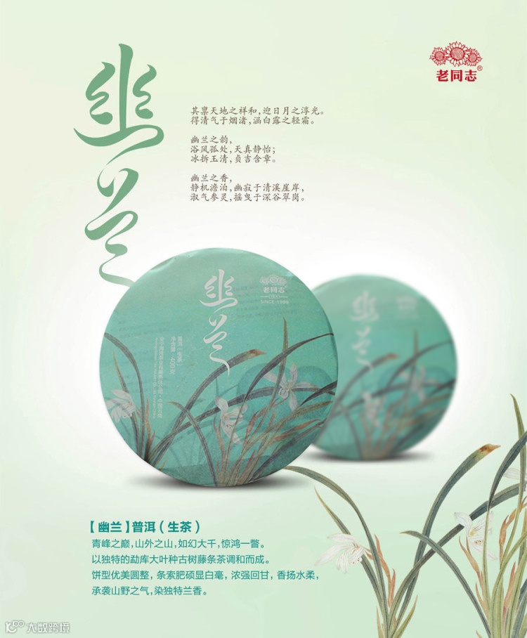 以独特的勐库大叶种古树藤条茶调和而成。饼型俊美圆整,条索肥硕显白毫,浓强回甘,香扬水柔,承袭山野之气,染独特兰香。